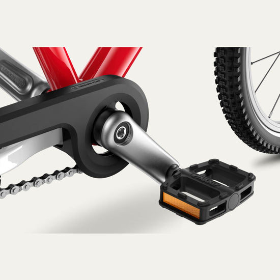 The lightweight aluminium frame is carefully shaped to suit growing riders, making it easy to get on and off while encouraging an upright, balanced riding position. Child-specific brakes, grips and saddle are sized perfectly for smaller hands and bodies, helping kids stay in control and feel secure. A steering limiter reduces the risk of sudden over-turning, while the enclosed chainguard keeps clothing protected.